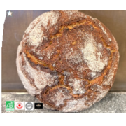Le Viking bio 450gFarine blé T80, complète de seigle, levain, graines de tournesol, flocons d'avoine, lin, sel de Guérande. Cuisson au feu de bois. Producteur : La ferme des hirondelles. |