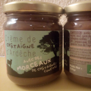 Crème de châtaigne nature - 250gCrème de châtaigne classique, simplement des châtaignes du sucre de canne et de l’eau. 58% de sucre sur le produit fini. |