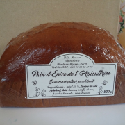 Pain d'épice de l'ApicultriceMiel 50 %, farine de blé, lait, beurre, œufs, épices, poudre levante : bicarbonate. Sans conservateur ni colorant. 500g |