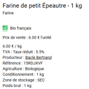 Farine de Petit Epeautre - 1 kg (AB)Collectif Percheron - producteur : Bertrand Bacle (AB): Farine de blé blanche T80 |