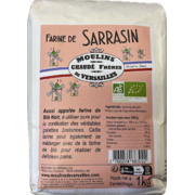 Farine de sarrasin (blé noir) BIO 1kgFarine de sarrasin de biologique aussi appelée farine de Blé noir, à utiliser pure pour la confection des véritables galettes bretonnes. Cette farine peut également se mélanger avec de la farine de blé pour réaliser de délicieux pains. |
