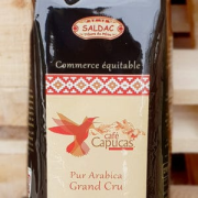 Café moulu bio Honduras 250gLe café Capucas du Honduras est puissant et aromatique aux notes de fruits secs et de cacao, issu de quelques plantations soigneusement sélectionnées et du commerce équitable. Il est présenté en sac de 250 g avec valve pour maintenir toute sa fraîcheur, pour les particuliers, cafés, hôtels, restaurants et collectivités. Biologique, certifié Ecocert. Notre gamme de café est certifiée commerce éq |