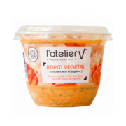 Ktipiti végétal mezze grec bioDescription Un vent de Grèce souffle sur l’apéro ! Ce ktipiti revisité mêle tofu, poivrons et épices pour un résultat crémeux et relevé. Ingrédients Poivron rouge* 39%, haricot blanc* (origine France) 16%, huile de colza*, noix de cajou** 16%, feuille de menthe* 6,2%, jus de citrons* de Sicile, sel de Guérande, aneth*, ail*, levure maltée* (contient gluten), poivre*. * ingrédients issus de l’ag |