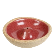 Porte-encens rond poteriePorte-encens traditionnels confectionnés dans la cité utopiste de Auroville (Inde), cuisson mixte gaz, bois. Pigments : poudre de riz, verre pilé. |