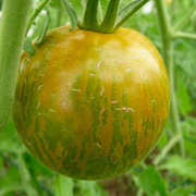 Plant de tomate Green ZebraChair ferme, verte, à saveur douce légèrement épicée. |