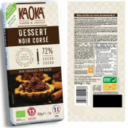TABLETTE DESSERT NOIR CORSE 72% 200G BIOPâte de cacao Équateur*, sucre de canne blond*, beurre de cacao*, extrait de vanille*. *Ingrédients agricoles issus de l’agriculture biologique. |