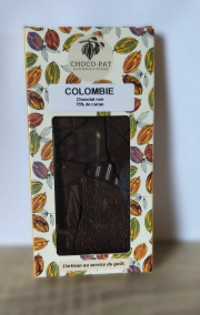 Noir Colombie greand cru 75% de cacao, fèves transportées à la voileChocolat grand cru de Colombie 75% de cacao. |