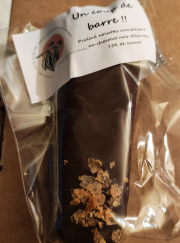 Barre de praliné aux amandesPraliné aux amandes avec des éclats d'amandes torréfiées, enrobé d'un chocolat noir d'Equateur à 75% de cacao. |