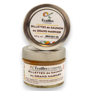 Rillettes de Saumon au Grand Marnier 100g (par 24)Ingrédients : saumon (30% - origine élevage), saumon fumé (20,5%), crème, eau, beurre, Grand Marnier (3,1%), fibres de pomme de terre, citron lait, sel, poivre de Kampot, aromates. |