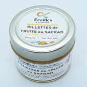 Rillette de Truite au Safran de Houdan 100g (à l'unité)Le Safran de Houdan ! Ingrédients : Truite (55,4%), crème, eau, beurre, citron, fibres de pomme de terre, lait, sel, poivre, Safran de la ferme DE SMET (0,016%). |