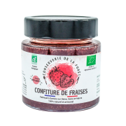Confiture de fraisesVous retrouverez dans cette confiture de bonnes fraises locales et bio, une touche de sucre, du jus de citron, ainsi qu’un soupçon de pectine de fruits. Les fruits sont longuement compotés pour révéler toutes leurs saveurs. |