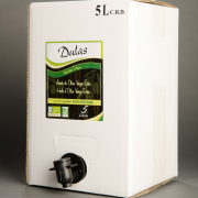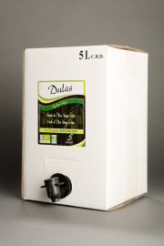Huile d’olive vierge extra bio Dulas 5l (Tarif B)Huile d’olive vierge extra BIO certifiée par le Conseil de la production agricole écologique de Navarre. Huile d’olive qui se distingue par son agréable goût « fruité vert ». Huile douce et légère,caractéristique de l’olive Arbequina dont elle est issue.DLUO A conserver dans un endroit sec, à l’abri de la lumière et à température ambiante.À consommer de préférence entre 12 et 18 mois. BIB 5l |