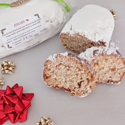 Stollen 250g, pain aux fruits confits et amandesStollen 250g, Ingrédients : farine de blé – lait – beurre – sucre – œuf – levain Sel – fruits secs (raisin, orange, citron) amande – rhum – cannelle |