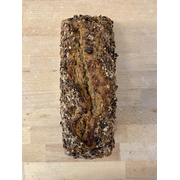 Pain aux 6 graines - 1 kgSechskornbrot de son vrai nom, pain d'origine allemande, de très longue conservation. Mélange de farines de blés anciens et de Seigle, au levain, avec graines de courges, tournesol,lin doré et brin, flocon d'avoine, chanvre. Format moulé. |