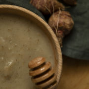 Veloute topinambours et miel du GâtinaisVeloute topinambours et miel du Gâtinais - 95 % d'ingrédients d'origine locale - soupe fraîche ni pasteurisée, ni stérilisée |