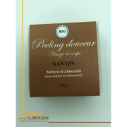 Savon Peeling douceur (100 g)Ce savon est fait sur une base de beurre de karité. Nous y avons ajouté de la poudre de noyaux de pruneaux pour le côté exfoliant léger. |