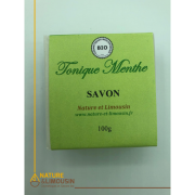 Savon Tonique Menthe (100g)Composition : Beurre de karité, beurre de coco, huiles essentielles d'eucalyptus et de menthe poivrée |