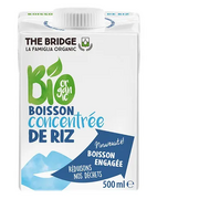 Boisson de Riz concentrée - 500ml (équivalent 1 Litre)The Bridge ITALIE 500ml (équivalent 1 Litre) Permet de réduire de moitié le poids, le volume de transport et la quantité de packaging par rapport au format 1L.Boisson 100% végétale, sans lactose, sans gluten, sans sucres ajoutés avec sa saveur naturellement sucrée apportée par le riz biologique. |