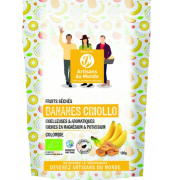 Bananes séchées bio, 100 grLa banane criollo est très aromatique et moelleuse, mais aussi riche en fer, en potassium et en vitamine B6. |