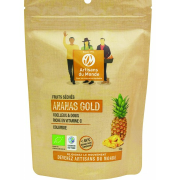 Ananas séchés, 100 grL'ananas Gold est une variété très sucrée, d'une belle couleur dorée. Il est riche en vitamine C, source de magnésium et de potassium. |