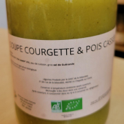 Soupe courgettes et pois casséscourgettes(63%) et pois cassés(4%) eau de cuisson gros sel |