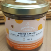 Délice Poire HibiscusPréparation à base de poire et de sucre. Ingrédients : poire (60 %), sucre, hibiscus (0,43 %), épices. Valeurs nutritionnelles pour 100 g : 912 kJ / 219 kcal, matières grasses <0,5 g, dont acides gras saturés <0,1 g g, glucides 52 g, dont sucres 51 g, fibres <0,5 g, protéines 0,5 g, sel 0,14 g. |