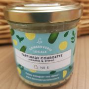 Tartinade Courgette Estragon 140gcourgette (55,9 %), graine de tournesol, huile de tournesol, jus de citron, vinaigre de cidre, eau, ail frais, sel, basilic, estragon (0,09 %), herbes de Provence. Valeurs nutritionnelles pour 100 g : énergie 838 kJ / 203 kcal, matières grasses 18 g, dont acides gras saturés 0,80 g, glucides 4,1 g, dont sucres 1,9 g, fibres 0,3 g, protéines 3,6 g, sel 1,14 g. Conserver au frais après ouvertu |