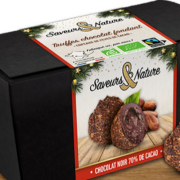 TRUFFES CHOCOLAT FONDANT (140G) SAVEURS & NATURETruffes fourrées à la ganache au chocolat, enrobées de chocolat noir 70% de cacao minimum et recouvertes de copeaux de fèves de cacao |
