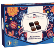 COFFRET ASSORTIMENT GRANDS PRALINES (140G) PALAIS D EBENEPraliné graine de courge, praliné noix du Brésil, +praliné amande |