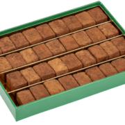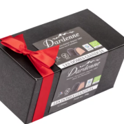 COFFRET PLAISIRS DES "SANS" (170G) DARDENNEdes carrés raisins noisette et graines de sésame toastées, des carrés figues amandes et des carrés dattes noisettes à l’état brut. confiseries au cœur riche en fruits secs, enrobées de notre 100% cacao. |