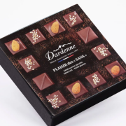 ASSORTIMENT SYMPHONIE (210G) DARDENNEassortiment de 22 chocolats noir, blanc et lait d’une finesse incomparable : mini rochers, lingots caramel-coco et carrés pralinés crunchy. |
