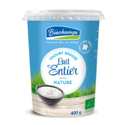 YAOURT BRASSE DE VACHE ENTIER NATURE (400G)Par 6 Biochamps Lait entier de vache collecté 3 fois par semaine chez les éleveurs Biolait, situés autour de la laiterie dans le piémont pyrénéen. Le lait est pasteurisé en cuve au bain marie dans le respect du produit frais toute l'année. Il n'est pas homogénéisé, ce qui permet au yaourt d'avoir ce goût si authentique. |