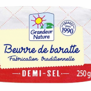 BEURRE DE BARATTE DEMI SEL (250G) décolisableGrandeur Nature AB Fabrication traditionnelle en baratte à partir de crème maturée à l'ancienne. Par 12 |