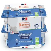 YAOURT NATURE 4X125G - ELIBIOLait* de vache entier pasteurisé 99% (France), poudre de lait de vache écrémé* (France), ferments lactiques (lait). *issus de l’agriculture biologique. ALLERGENE: lactose (lait). Fabriqué en France, à partir de lait de vache FRANÇAIS |