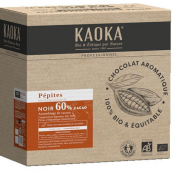 PEPITE CHOCOLAT NOIR 60% KAOKAKAOKA - Ingrédients : Cacao 66% minimum, pâte de cacao*, sucre de canne blond*, beurre de cacao*, émulsifiant : lécithines de tournesol, extrait de vanille*. *Ingrédients agricoles issus de l'Agriculture Biologique. Peut contenir des traces de fruits à coques et de lait. |