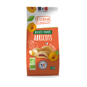 Biscuits fourrés abricot 150gr elibioIngrédients : Farine de blé* 40%, fourrage abricot * 25%(sirop de blé*, purée d’abricot* 6,7% , sucre de canne*, jus concentré de citron*, pectine E440, arôme naturel d’abricot), sucre glace*, beurre*10%, huile de tournesol*, lait écrémé en poudre*, poudre à lever (diphosphate disodique, carbonate acide de sodium, farine de blé*), sel.*issus de l’agriculture biologique.Contient du Gluten et du |