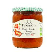 CHAKCHOUKA ROUGE (400G)Tomates* (cubes*, coulis*, double concentré*) 50,6%, poivrons* rouges 31,1%, oignons* (cubes*, déshydratés*), huile d'olive vierge extra extraite à froid*, coriandre*, persil*, ail*, sel, épices* (dont piment de Cayenne* 0,01%). *Ingrédients issus de l'agriculture biologique. |