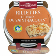 RILLETTES SAINT JAQUESNoix de St Jacques 30% (**espèce et origine : voir sur le couvercle), poisson blanc, crème fraîche (crème, carraghénanes 0,02%), carottes, beurre demi-sel, huile de tournesol, farine de blé, pulpe d'oignons (sulfites), ail, sel, épices. |