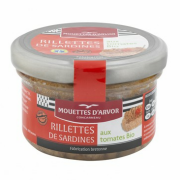 RILLETTES SARDINES AUX TOMATESChair de sardines 60%, tomates* 22%, huile de tournesol*, oignons* réhydratés, stabilisants : gommes de guar* et de caroube*, sel, épices*. *39% de produits d'origine agricole sont issus de l'Agriculture Biologique. Certifié par FR-BIO-10. |