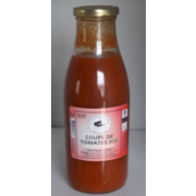 Velouté de tomates bio en bouteille verre de 75 clTomates *(83%), oignon*, sucre* (1.5%), huile d’olive, sel, ail*, poivre*, basilic*. *ingrédients Issus de l’Agriculture Biologique |