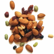 Fruits secs mélange étudiantRaisins secs 35%, amandes décortiquées nature 20%, noix de cajou 20%, noisettes décortiquées nature 15%, noix du Brésil 10%. |