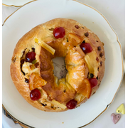 Brioches des rois aux fruits confitsbeurre, sucre, levure biologique, lait, oeufs, farine de blé, fruits confits |