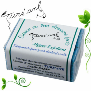 Savon exfoliant au lait d'ânesse et Alguesindications : même base que pour le savon classique, il contient en plus du noyau d'abricot finement broyé, gommage très doux pour visage et corps, redonne de l'éclat, 1 à 2 fois par semaine maxi |