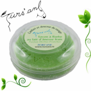 Savon à barbeRedécouvrez la douceur du savon pour le rasage, le lait d'ânesse apaisera et hydratera votre peau. Une bonne idée cadeau ! Composition: base végétale, vitamine E, huile de pépin de raisin, pigment naturel pour la couleur, mélange d'extrait de tilleul, chèvrefeuille et autres plantes, 5% de lait d'ânesse frais bio. |