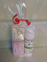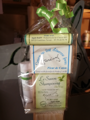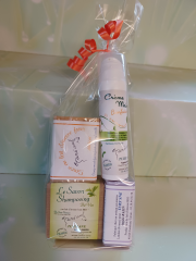 Assortiment shampooing et savonsDans un sachet cadeau, 1 shampooing, 1 baume lèvres, 1 savon Argan 100 gr et 1 savon Coton 100 gr |