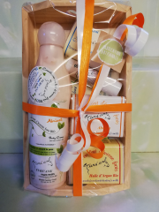 Coffret-cadeau FemmeDans une boite en bois, 1 lait corps Abricot, 1 savon Abricot 100gr, 1 savon Argan 100 gr, 1 baume à lèvres et 1 savon Coton de 50 gr |