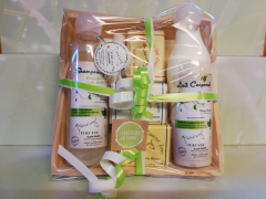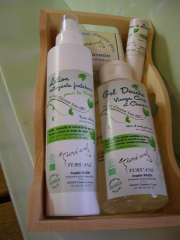 Coffret découverteDans une grande boite en bois, 1 lait corps Nature, 1 shampooing, 1 baume à lèvres, 1 savon Argan de 100 gr, 1 savon Coton 100 gr et1 savon Pulpe de raisin 100 gr |