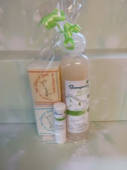 Assortiments de savons et baume lèvres au lait d'ânesse1 savon-shampooing, 1 savon Fleur de Coton 100gr, 1 savon verveine citronnée 50 gr et 1 baume à lèvres |