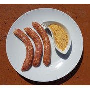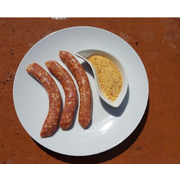 Chipolatas aux épices indiennes BIO x16Chipolatas mises sous vide Epices : sel de Guérande - oignon - poivre noir - piment - cumin - coriandre - persil - curcuma |