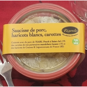 Saucisse de porc, haricots blancs, carottesPot consigné. -1€ au retour. Plat préparé avec viandes et légumes approvisionnés localement. Plats cuisinés artisanalement à Naves. Pas de colorant, pas de nitrites, pas d’exhausteurs ou conservateurs. Seulement du sel. |